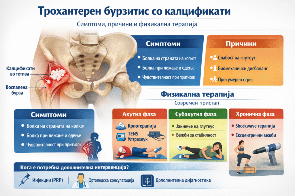 Трохантерен бурзитис со калцификати – симптоми, причини и физикална терапија