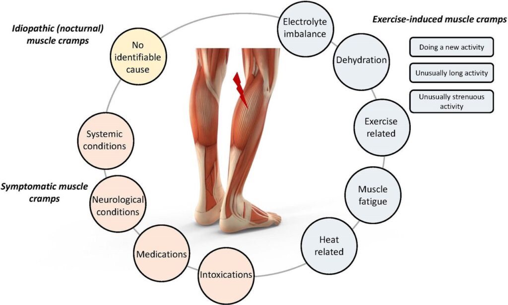✔️Мускулен замор и преоптоварување: Премногу напорно или предолго оптоварување на мускулот може да доведе до грч.